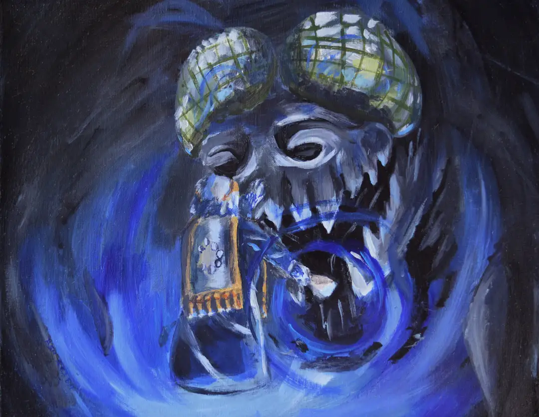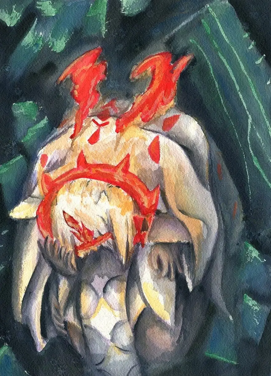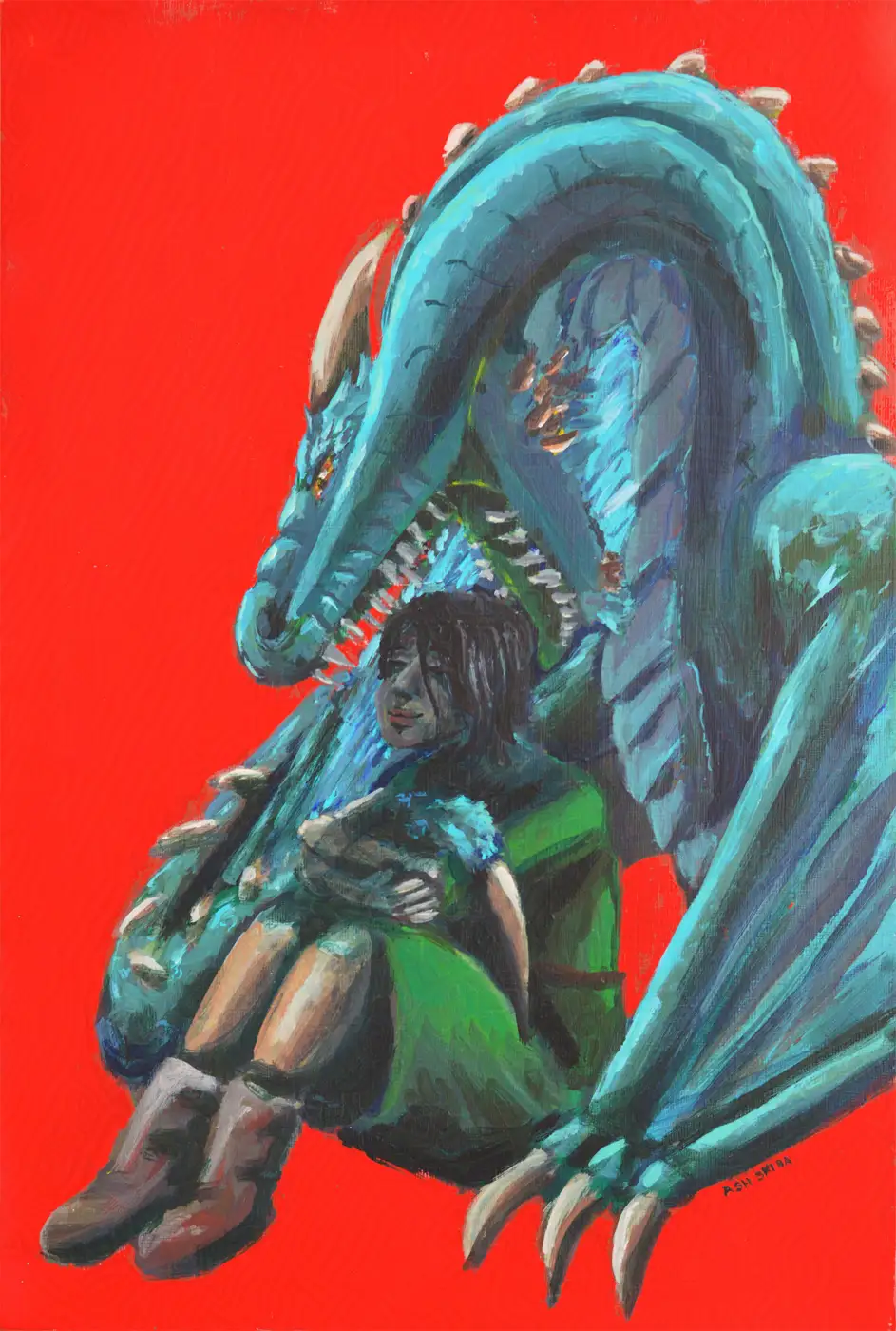 Hraesvelgr and Shiva from FFXIV. Acrylic on silver leaf