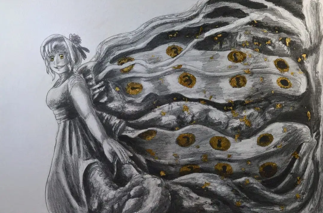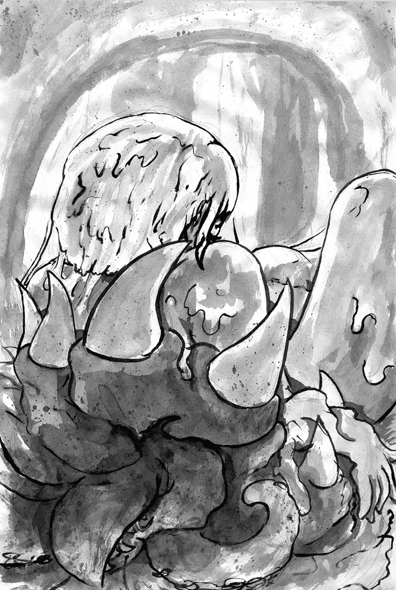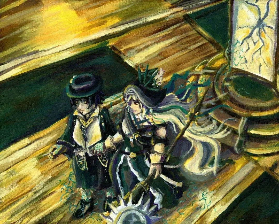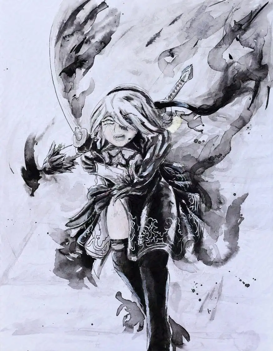 Hraesvelgr and Shiva from FFXIV. Acrylic on silver leaf