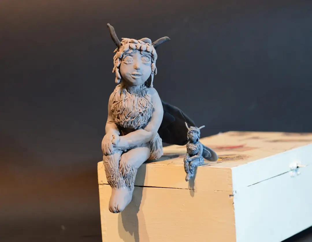Cutest herb sprite. Polymer clay original and scaled-down 3d print.