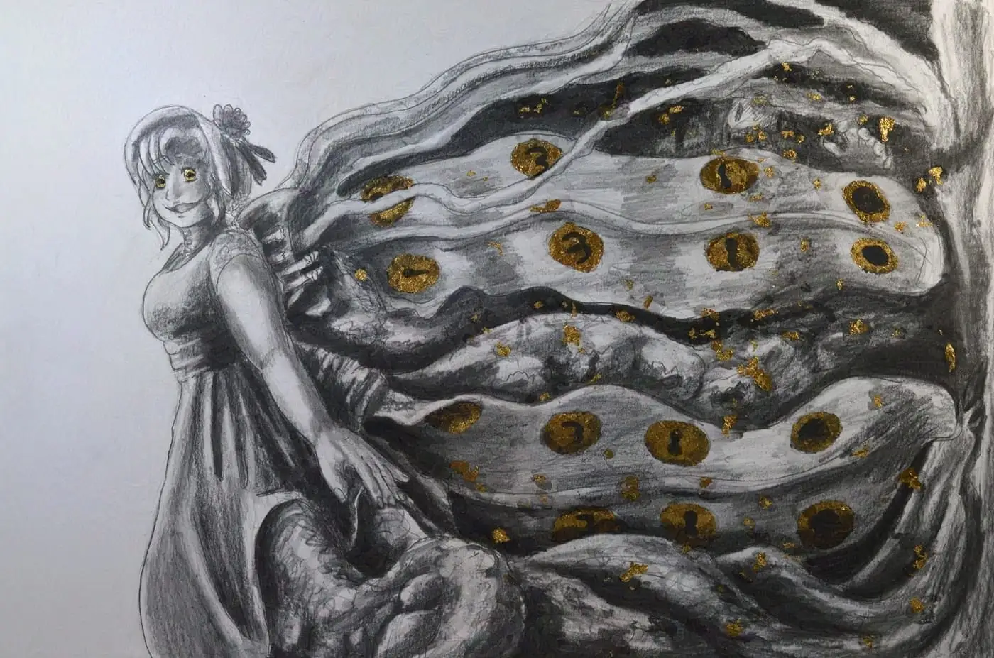 Graphite and imitation gold leaf