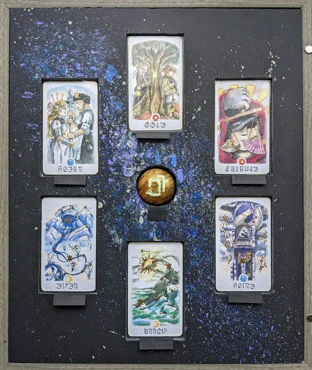 Watercolor reimaginings of the six Major Arcana from Final Fantasy XIV.